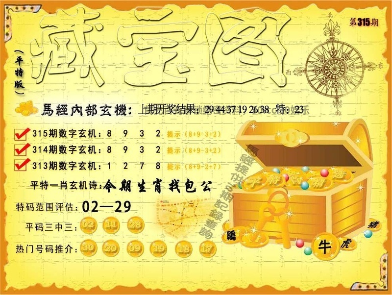 319期:平特藏宝图玄机:【八卦方位有定向】 解:八卦方位有定向,解牛,平特牛 推荐平码:20.18.03.07.19.38 开奖结果:29.22.16.31.21.17T45 |
